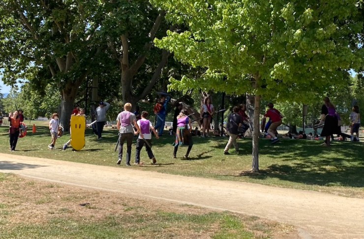 Throughout the year, we hold several special legacy league events. Like the regular events, we meet at a park and play in the Falnorian game world. Unlike regular events, however, players take on the role of an entire region rather than playing individual characters; and rather than running intensive missions we run shorter objectives. Each region has its own set “build” of abilities rather than advancing in classes; as players complete quests and objectives, they gain or lose things for this build and slowly shift the character of that region. The choices made in legacy league, like regular leagues, directly impact the game world and alter its history. Legacy league is open to both junior league and adult league players, and run in a hybrid junior-adult mechanical system.