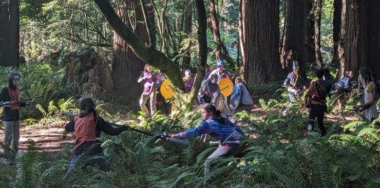 Regular events include both the weekly and weekend events. During these events we meet on the field at a park or school and run for several hours; weekly events generally meet for just a couple hours, whereas weekend events run for a full day. These are the events that follow a given league’s story: players make characters, play out their choice of quests from the mission board, and work through adventures to solve the storyline of their location and year. These stories all run in the Falnorian game world, and contribute to the shared history of the game. There are regular events run both for junior league and adult league – the schedules for each league respectively can be found on the calendar.